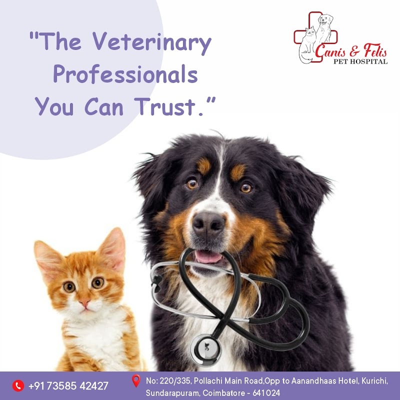 CANIS & FELIS PET HOSPITAL is a trusted veterinary clinic in sundarapuram, Coimbatore, Tamil Nadu. Rated 4.9★ from 53 reviews. They offer health check-ups, vaccinations, surgical procedures, dental care and emergency treatment to pet owners across Coimbatore. Finding a reliable veterinary clinic in Coimbatore can be challenging, but CANIS & FELIS PET HOSPITAL is known for quality care and customer satisfaction. Their team handles dogs, cats, birds and all types of pets with dedication. Located in sundarapuram, they serve pet owners from across Coimbatore and surrounding localities. Personalised services ensure the best experience for both pets and their owners. Contact them directly by phone or WhatsApp for availability, pricing and bookings. PetPros has verified this listing via Google Places — always call ahead to confirm timings.