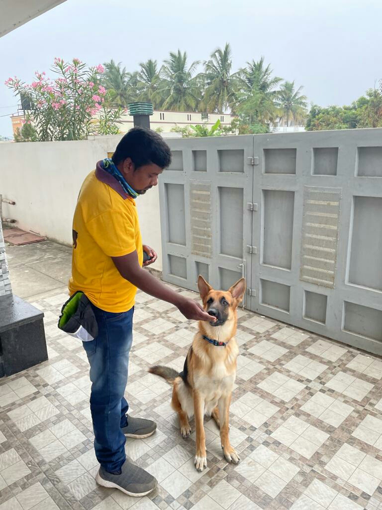 One of the best dog trainer in and around coimbatore. Iam really satisfied with his training for my German Shepherd. He is one of few trainers who is specialised in guarding training. I have been training my GSD since he is 3 months old and now he is 8 months. He have improved a lot in both obedience and guarding. He is really good at training dogs in a positive way, rather than harsh methods. I would definitely recommend him for training your most lovable dogs. Keep up your work and looking forward to continue training for my GSD..