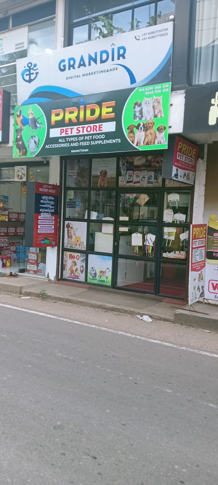 The Pride pet store is at the right side of perumukham ramanattuka road junction at NH 66 ramanattukara. They provides all kind of good quality pet foods and accessories.