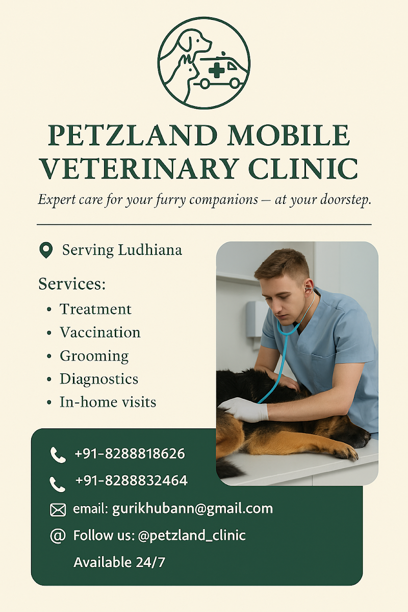 Located in Rishi Nagar, Petzland mobile veterinary clinic is conveniently accessible to pet owners across Ludhiana and surrounding localities. Whether you are a first-time pet parent or an experienced animal lover, their team is equipped to provide the guidance, care, and services your pet deserves. The team communicates in Hindi and English, ensuring clear and comfortable interaction for all clients.
