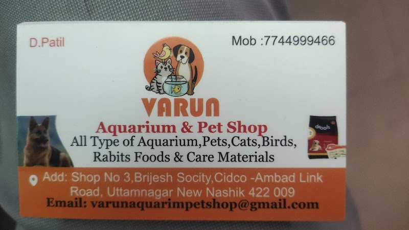 VARUN AQUARIUM & PET SHOP is a trusted pet shop in Uttam Nagar, Nashik, Maharashtra. Rated 4.4★ from 32 reviews. They offer premium pet food, accessories, toys, grooming products and health supplements to pet owners across Nashik. Finding a reliable pet shop in Nashik can be challenging, but VARUN AQUARIUM & PET SHOP is known for quality care and customer satisfaction. Their team handles dogs, cats, birds and all types of pets with dedication. Located in Uttam Nagar, they serve pet owners from across Nashik and surrounding localities. Personalised services ensure the best experience for both pets and their owners. Contact them directly by phone or WhatsApp for availability, pricing and bookings. PetPros has verified this listing via Google Places — always call ahead to confirm timings.