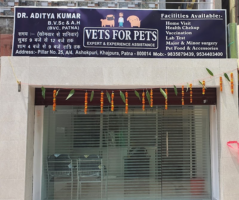 VETS FOR PETS is a trusted veterinarian serving pet owners in A4ashokpuri, Patna, Maharashtra. With a rating of 4.8★ from 620 verified customer reviews, they have established a strong reputation for quality service and genuine care for animals. They specialise in general vet care, vaccinations, surgery, offering tailored solutions for the unique needs of pets and their owners. Their services include veterinary care, routine health check-ups, vaccinations, emergency treatment, dental care, and surgical procedures.