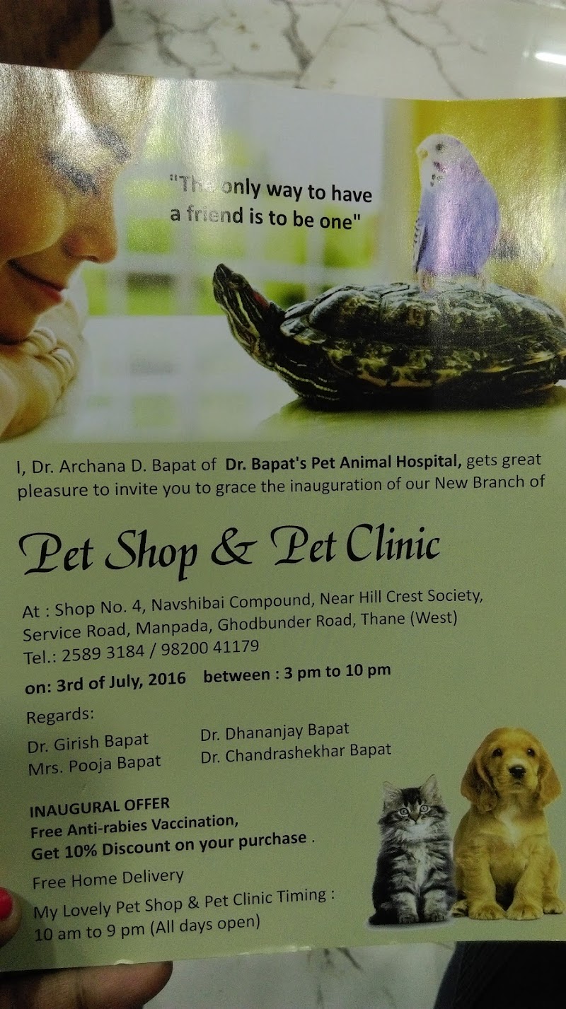 I visited "My Lovely Pet shop" for the general checkup of my 2 kittens/cats. Here is my observation: 1) Shop is also a pet hospital and is well equipped. It is kept clean and hygiene is maintained. 2) It is on the main road and easily accessible 3) The consulting vet was very gentle with my pet. She took time to patiently explain all the procedures and also answered all my queries 4) The place is not too crowded so the waiting time is short and vets will consult you in 10 to 15 minutes Overall I am very happy with the experience and I think my pets too would agree with me.