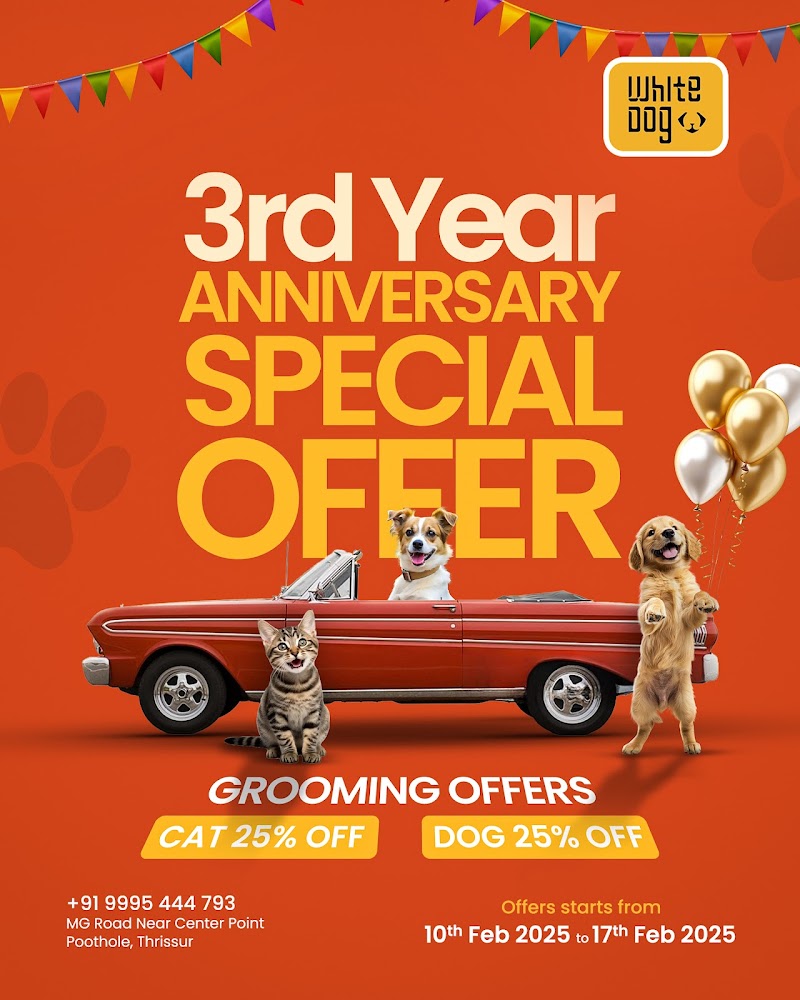 WHITE DOG PET PARTNER is a trusted pet shop in Poothole, Thrissur, Kerala. Rated 4.5★ from 282 reviews. They offer premium pet food, accessories, toys, grooming products and health supplements to pet owners across Thrissur. Finding a reliable pet shop in Thrissur can be challenging, but WHITE DOG PET PARTNER is known for quality care and customer satisfaction. Their team handles dogs, cats, birds and all types of pets with dedication. Located in Poothole, they serve pet owners from across Thrissur and surrounding localities. Personalised services ensure the best experience for both pets and their owners. Contact them directly by phone or WhatsApp for availability, pricing and bookings. PetPros has verified this listing via Google Places — always call ahead to confirm timings.