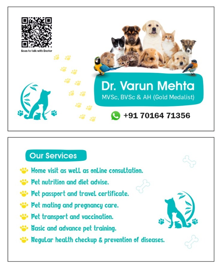 The Veterinarian for home visits as well as online consultation ~ Dr Varun Mehta